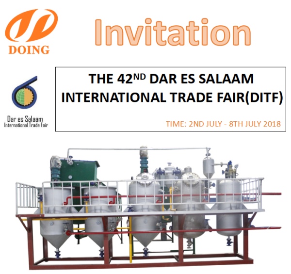 If you wanna to get more details about Welcome to visit Doing Company at the 42nd Dar Es Salaam International Trade Fair (DITF), you can send E-mail to market@doingoilmachine.com . Or you can consult our professional engineers and specialized sales team by leaving a message in below form. We will contact you ASAP. You also can visit our factory in Henan, China.